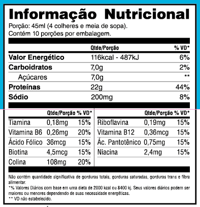 Uso Sugerido: Ingerir uma porção (4 colheres e meia de sopa) antes ou após os exercícios físicos, ou entre as refeições, ou conforme orientação de um nutricionista e/ou médico nutrólogo.