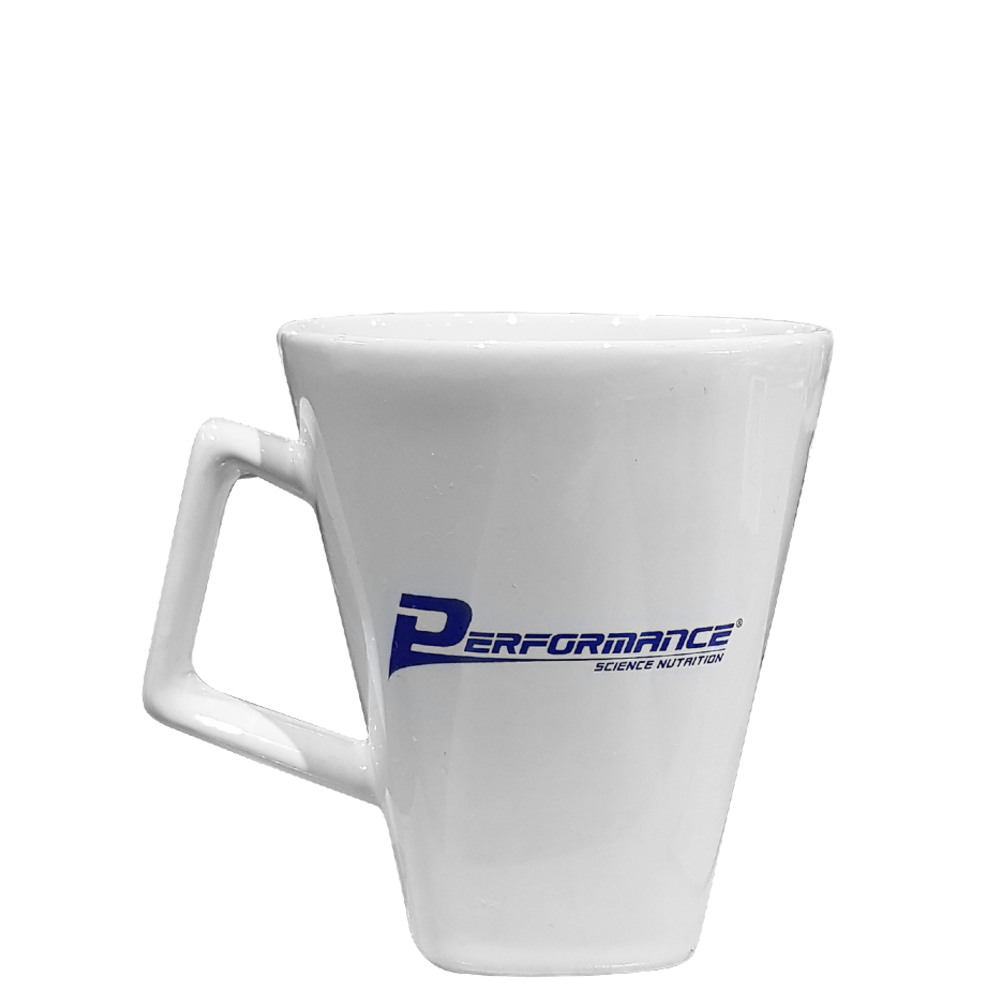 Disponibilidade: Fora de estoqueCaneca Branca de Porcelana 270ml Performance Nutrition, Resistente a micro-ondas e lava-louças.