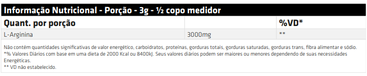 L-ARGININE SCIENCE POWDER® é um Aminoácido Essencial que está na forma isolada, cuja porção fornece 3g de L-Arginina.