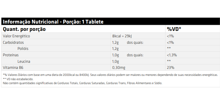 Uso Sugerido: Mastigar 1 tablete antes do exercício ou 1 tablete logo após o término, ou conforme a recomendação de um nutricionista e/ ou médico nutrólogo.