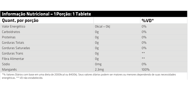 Cada tablete fornece 2,3mg de Manganês Quelato.