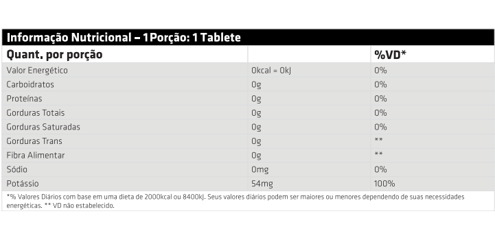 Ingredientes: Potássio Quelato, Celulose Microcristalina, Croscarmerlose e Estearato de Magnésio. NÃO CONTÉM GLÚTEN.